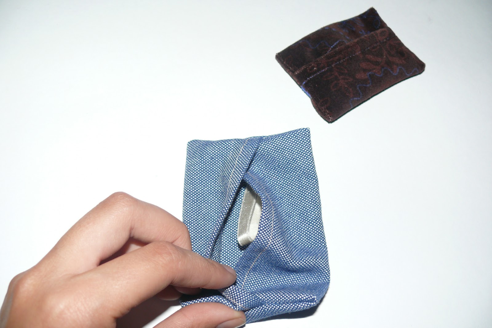 Na koniec trochę zaległości, czyli kolejne elementy do prezentowego zestawu i coś, co nazywane jest trójkątną kosmetyczką (choć mój ścisły umysł alarmuje, że trójkąt jest przecież figurą płaską, a nie przestrzenną :P) uszyte tylko z tego powodu, że podoba mi się właśnie jego forma: